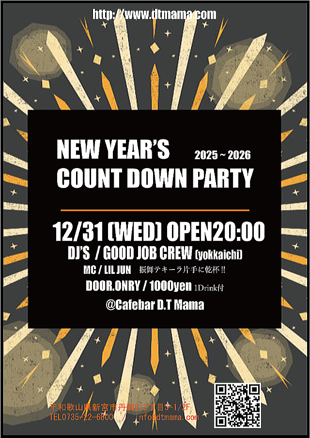 出演 DJ'S / GOOD JOB CREW MC / LIL JUN OPEN/START 20:00 当日1.000円(1DRINK付) 注意*当日券のみ