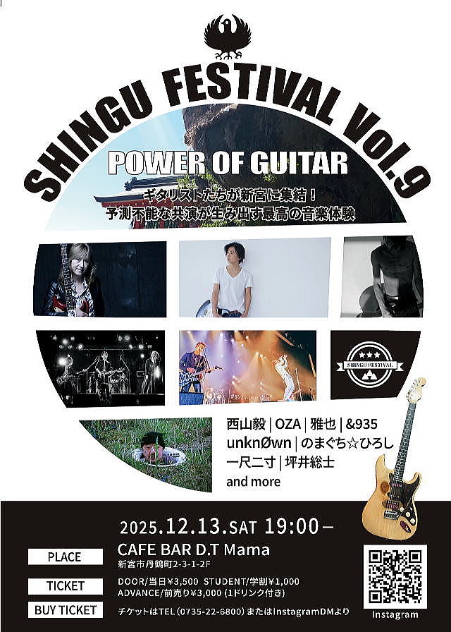 出演 西山 / OZA / 雅也 / &935 unknown / のまぐち☆ひろし 一尺二寸 / 坪井総士 and more OPEN 19:00 / START 19:30 前売 3.000円 / 当日 3.500円 /学生 1.000円(DRINK付) D.TMama チケット予約 *公演名 *お名前(カナでお願いします) *枚数 *連絡先 明記の上送信下さい。